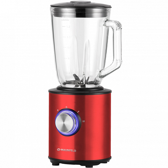 Maunfeld MBL.1000CH — это стационарный блендер насыщенного вишнёвого цвета со стеклянной чашей объёмом 1,5 литра. Корпус выполнен из нержавеющей стали. Модель имеет две скорости и импульсный режим работы. Под регулятором скорости встроена синяя подсветка. Предусмотрена защита от случайного включения и защита двигателя от перегрева.