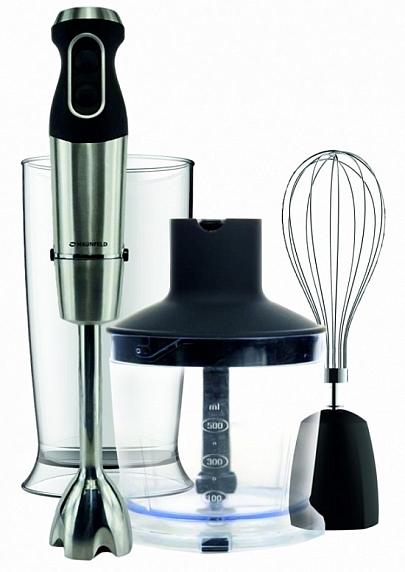 Погружной Блендер Маунфилд MHBL.1000S обеспечивает экономное использование рабочего пространства. Идеальное соотношение цены и качества является дополнительным аргументом в пользу приобретения. Корпус выполнен из комбинации метала и пластика, соединённых резиновыми прокладками для надежного крепления. Мощность прибора равна 1000 Вт, этого достаточно для выполнения ежедневных бытовых задач. Объемы чаши и стакана составляют 0,5 и 0,6 л соответственно. Элементы управления оснащены светодиодной подсветкой повышенной яркости. Система облегченного крепления насадок создана для вашего удобства. Длина сетевого шнура 1,3 м. В стандартной комплектации предусмотрены погружная стальная насадка, 2 ножа из нержавейки, венчик из нержавеющей стали, чаша, мерный стакан. Гарантия от производителя составляет 12 месяцев.