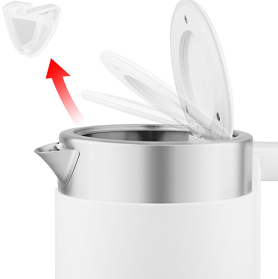 Электрический чайник MAUNFELD MFK-631W в классическом белом цвете подойдет для любого дизайна кухни. Скрытый нагревательный элемент предотвращает скопление на нем накипи. Система автоматического открывания крышки одним нажатием на кнопку. Индикация на кнопке включения «подскажет» когда прибор еще работает.