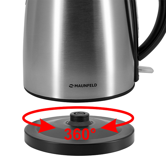 Корпус электрического чайника MAUNFELD MFK-743S выполнен в классическом цвете «нержавеющая сталь», который с легкостью впишется в любой современный интерьер. Прибор быстро вскипятит или подогреет до 1.7 литра воды. Дополнительная индикация уровня воды, а также съемный фильтр повышают удобство использования. Чайник может поворачиваться на 360 градусов в любую сторону вокруг своей оси. Закрытый нагревательный элемент не контактирует с водой и не подвержен коррозии, что увеличивает долговечность эксплуатации.