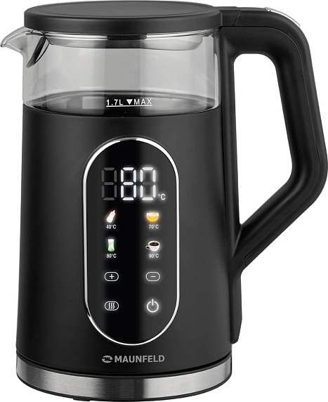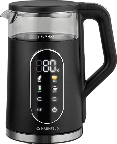 Чайник MAUNFELД MGK6702B — современный электрический помощник с продуманной эргономикой и аккуратным внешним видом. Корпус выдержан в черном цвете, поэтому устройство гармонично сочетается с базовой кухонной палитрой и остается уместным в любой обстановке. Лаконичные формы подчеркивают стройный силуэт, а компактные габариты помогают экономить место на рабочей поверхности.