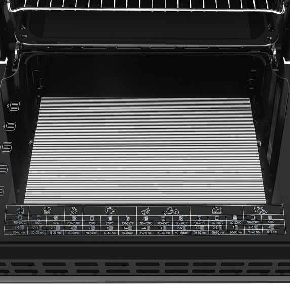 Управление духовым шкафом осуществляется электронно с помощью сенсорного программатора. На цифровом дисплее отображается всё необходимое для управления процессом приготовления: выбранный режим, температура и время. Всего предусмотрено 10 режимов работы, включая конвекцию с кольцевым нагревом и гриль.