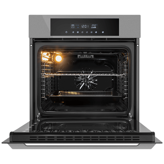 Объем рабочей камеры составляет 60 литров, что позволяет приготовить большое количество блюд одновременно. Благодаря функции быстрого разогрева, вы сможете сэкономить время на приготовление пищи. Внутреннее освещение обеспечивает хороший обзор всей рабочей камеры, а блокировка панели управления предотвращает случайное нажатие кнопок.