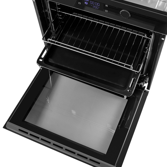Духовой шкаф от Maunfeld укомплектован тройным остеклением дверцы, формирующим надежную термоизоляцию и защиту при эксплуатации. Система тангенциального охлаждения гарантирует гомогенное распределение тепла и исключает перегрев корпуса. Для повышения комфорта и защиты предусмотрена блокировка панели управления, предотвращающая случайную смену настроек в процессе работы прибора. Функция автоматического отключения добавляет дополнительный уровень безопасности, предотвращая перегрев и экономя электричество.