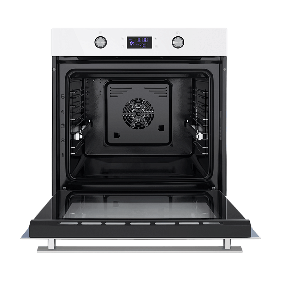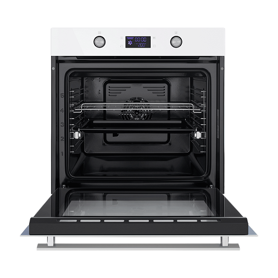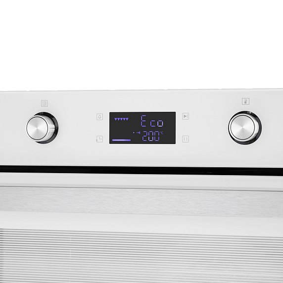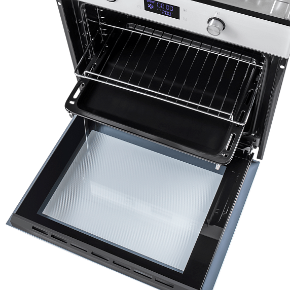 Модель обладает смешанным электронным управлением — режимы можно менять поворотными переключателями и сенсорными кнопками. Нажатие на электронные клавиши происходит легко и без усилий. Большинство приборов, у которых такой тип управления, имеют множество полезных программ и опций в дополнение к основным функциям. На цифровом дисплее отображается вся информация об выбранной функции и текущее время приготовления. Благодаря таймеру вам не нужно следить за временем приготовления. По истечении заданного времени духовка выключится и оповестит вас звуковым сигналом. Большое стекло дверцы и яркое внутреннее освещение помогут следить за процессом приготовления пищи, не открывая духовку.