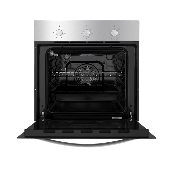 Встроенный вентилятор активно работает на протяжении всего процесса приготовления. Он создаёт особый воздушный барьер, который аккуратно выводит лишний жар наружу, не повреждая панель управления, мебель, рядом стоящую технику, а также не перегревая сильно поверхность духового шкафа. Кроме того, он помогает сохранить тепло внутри камеры.