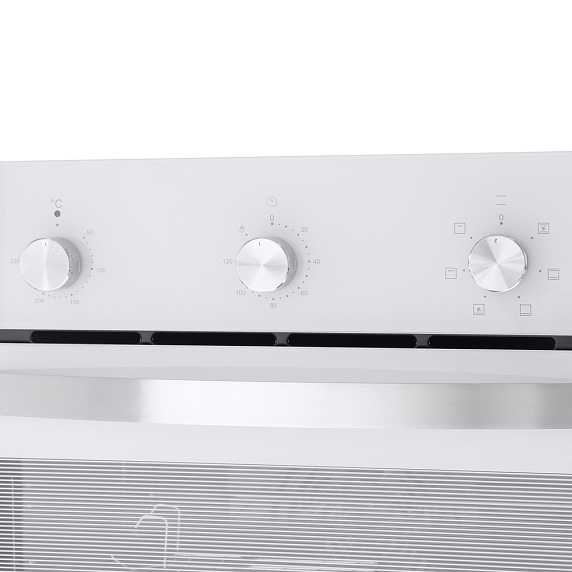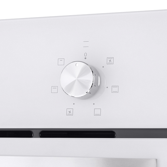 Дизайн этого прибора относится к коллекции Модерн. Белый цвет корпуса и серебристый цвет фурнитуры создают элегантный и современный образ. Механическое управление с помощью поворотных переключателей просто и удобно в использовании. Данный прибор оснащен механическим таймером и звуковым сигналом, что позволяет контролировать процесс приготовления блюд и избегать пережаривания или недоваривания. Всего в духовом шкафе предусмотрено 6 режимов работы, включая верхний и нижний нагрев, конвекцию с верхним и нижним нагревом, интенсивную выпечку, конвекцию с нижним нагревом и гриль.
