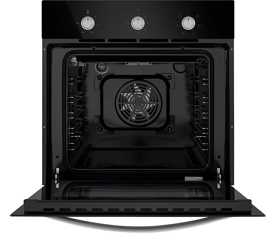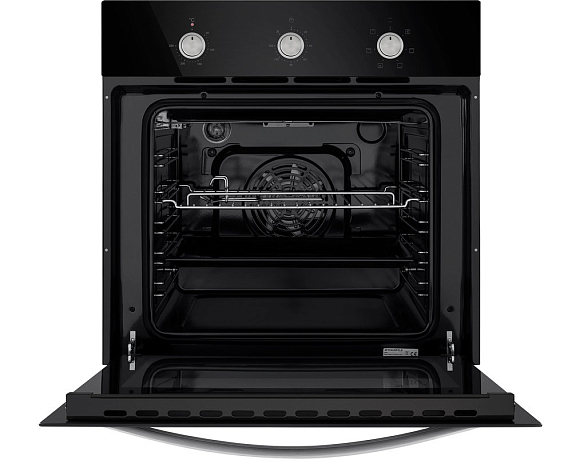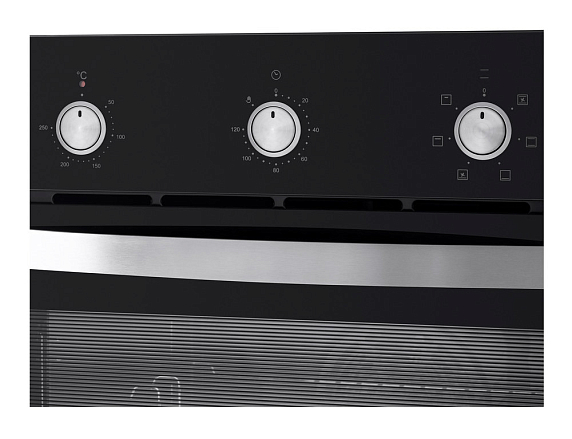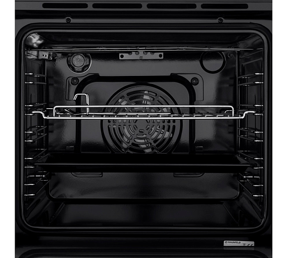 Встроенный вентилятор активно работает на протяжении всего процесса приготовления. Он создаёт особый воздушный барьер, который аккуратно выводит лишний жар наружу, не повреждая панель управления, мебель, рядом стоящую технику, а также не перегревая сильно поверхность духового шкафа. Кроме того, он помогает сохранить тепло внутри камеры.