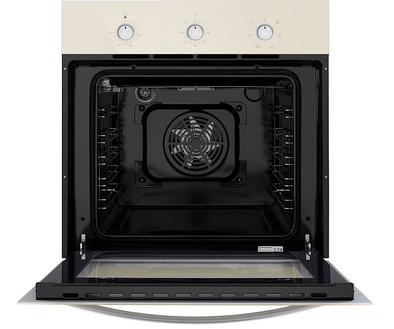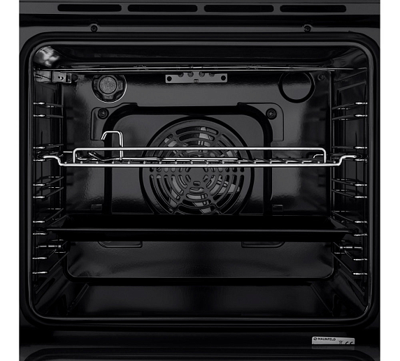 Встроенный вентилятор активно работает на протяжении всего процесса приготовления. Он создаёт особый воздушный барьер, который аккуратно выводит лишний жар наружу, не повреждая панель управления, мебель, рядом стоящую технику, а также не перегревая сильно поверхность духового шкафа. Кроме того, он помогает сохранить тепло внутри камеры.