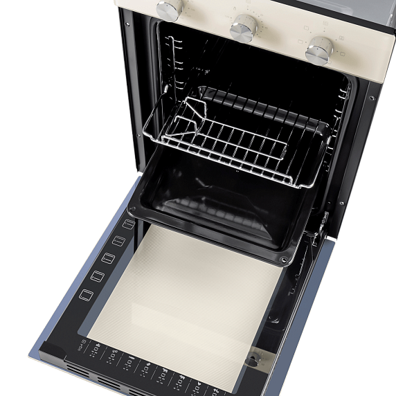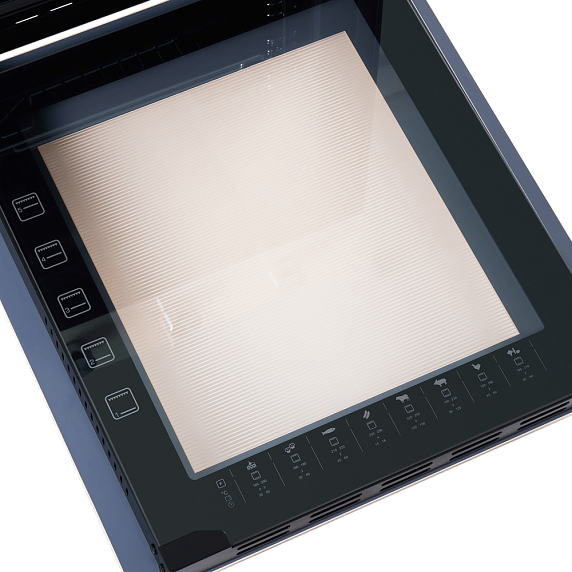 Конструкция дверцы включает два слоя стекла, что значительно повышает теплоизоляцию и делает использование прибора абсолютно безопасным. Эта особенность актуальна для владельцев маленьких детей: внешняя панель не нагревается до высоких температур. Система тангенциального охлаждения дополнительно защищает корпус и окружающую мебель от перегрева, выводя горячие воздушные массы наружу. Благодаря этому предотвращается преждевременный износ компонентов и допускается установка техники в мебельные блоки без риска деформации.
