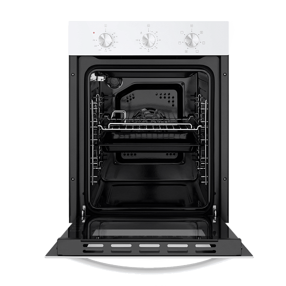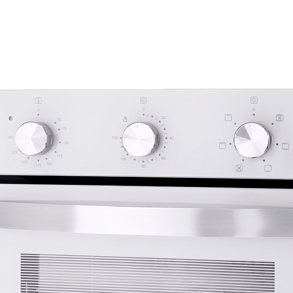 Выбирать нужный режим и настраивать температуру нагрева можно без труда при помощи удобных механических поворотных переключателей. Наличие таймера избавит вас от необходимости постоянно находится рядом с духовым шкафом в процессе готовки — достаточно лишь установить нужное время, по окончании которого сработает звуковой сигнал, а вы в это время сможете спокойно заниматься своими делами.