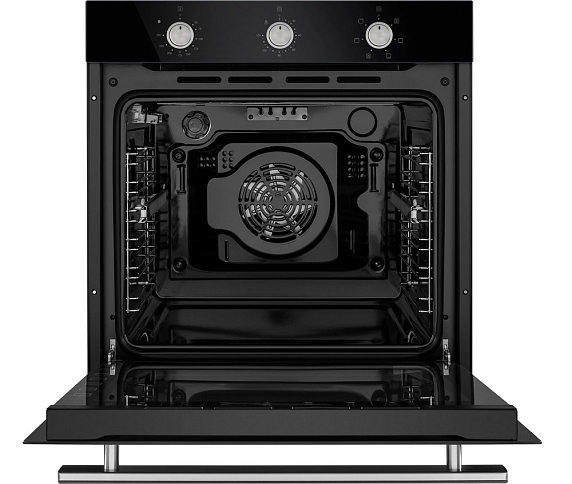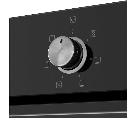 Встроенный вентилятор активно работает на протяжении всего процесса приготовления. Он создаёт особый воздушный барьер, который аккуратно выводит лишний жар наружу, не повреждая панель управления, мебель, рядом стоящую технику, а также не перегревая сильно поверхность духового шкафа. Кроме того, он помогает сохранить тепло внутри камеры.