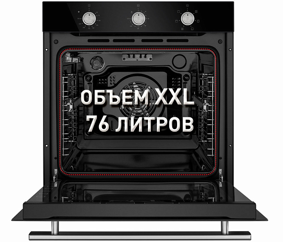 Духовой шкаф Maunfeld EOEF.766B из коллекции Master — это новое слово в кухонной бытовой технике. При стандартных размерах объем камеры увеличился до 76 л, это позволяет готовить блюда сразу на нескольких уровнях, экономя время. В комплектацию входят телескопические направляющие. Управление осуществляется при помощи утапливаемых ручек PUSH PULL, а за настройку таймера отвечают сенсорные кнопки. Дверца духового шкафа из тройного стекла и тангенциальное охлаждение создают холодный фронт и делает процесс приготовления безопасным.