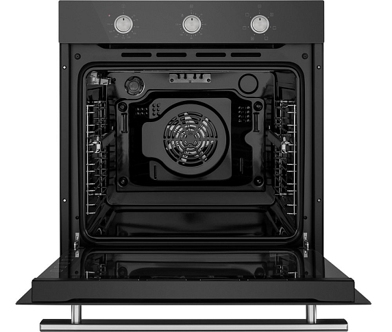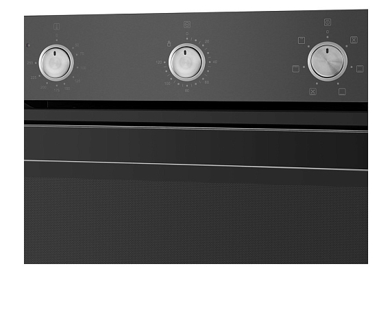 Встроенный вентилятор активно работает на протяжении всего процесса приготовления. Он создаёт особый воздушный барьер, который аккуратно выводит лишний жар наружу, не повреждая панель управления, мебель, рядом стоящую технику, а также не перегревая сильно поверхность духового шкафа. Кроме того, он помогает сохранить тепло внутри камеры.