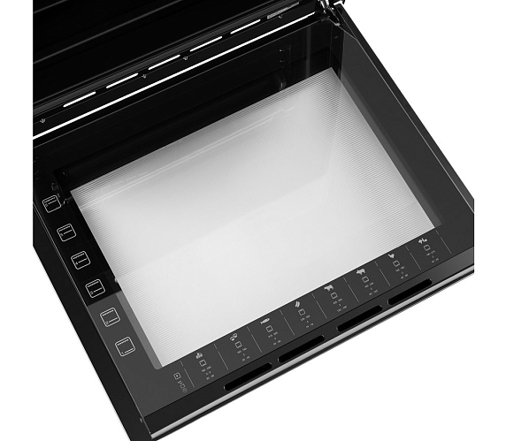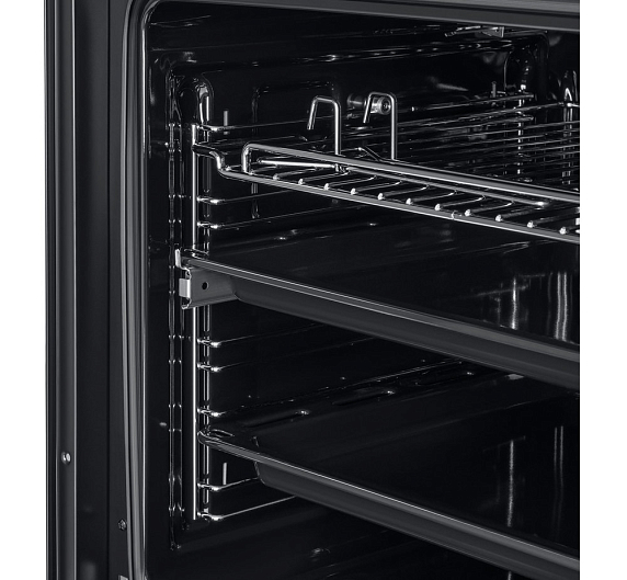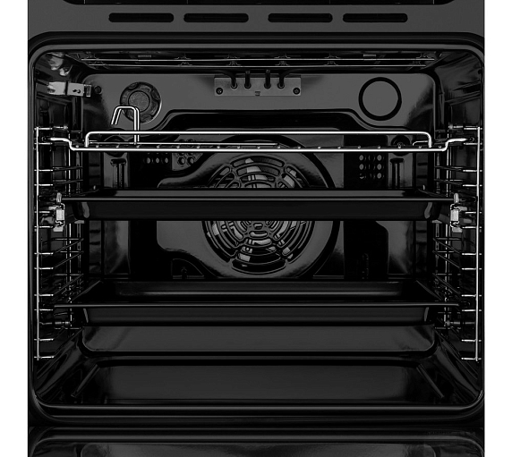 Встроенный вентилятор активно работает на протяжении всего процесса приготовления. Он создаёт особый воздушный барьер, который аккуратно выводит лишний жар наружу, не повреждая панель управления, мебель, рядом стоящую технику, а также не перегревая сильно поверхность духового шкафа. Кроме того, он помогает сохранить тепло внутри камеры.