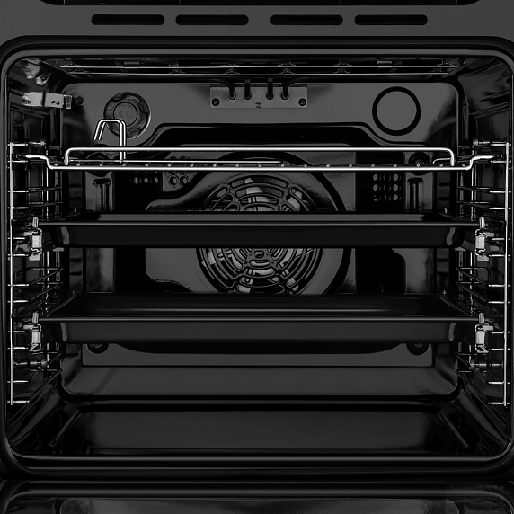 Для безопасности устройство оснащено холодной фронтальной дверцей с тремя стеклами и системой тангенциального охлаждения. В комплектации присутствует глубокий поддон и решетка, а также телескопические направляющие на двух уровнях, что позволяет гибко настраивать пространство внутри духовки.