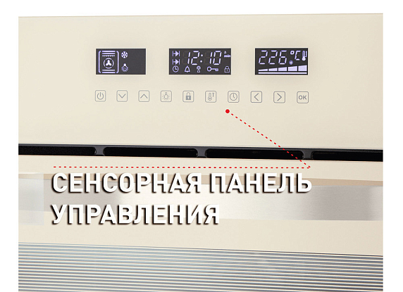 Модель выполнена в современном стиле, что подчеркивается бежевым цветом корпуса и серебристыми элементами фурнитуры. Электронное управление и сенсорный программатор обеспечивают удобство и простоту использования, а дисплей Cold White облегчает настройку и контроль за работой прибора.