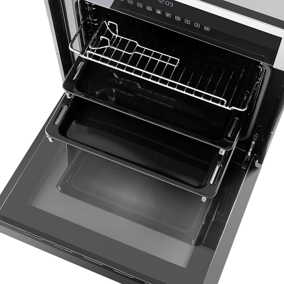 Электрическая духовка от Maunfeld предоставляет пользователям 11 программ функционирования, что позволяет готовить разнообразные кушанья с максимальной точностью. Задействование верхнего и нижнего нагревателей формирует равномерный тепловой фон, а наличие опции интенсивного выпекания с конвекцией делает модель оптимальным вариантом для поклонников выпечки. Конвекция с кольцевым нагревателем в сочетании с нижним жаром позволяет достигать идеальной хрустящей корочки на пицце или хлебе. Для ценителей мяса предусмотрен гриль, способный также функционировать в тандеме с конвекцией, обеспечивая равномерную прожарку. Электрическая духовка дополнена функцией дефростации, упрощающей подготовку замороженных полуфабрикатов. Современное оформление и интуитивное управление повышают ее привлекательность для пользователей. Высокая энергоэффективность и гомогенное распределение тепла гарантируют качественную термообработку продуктов.
