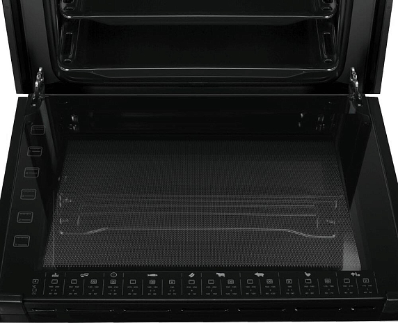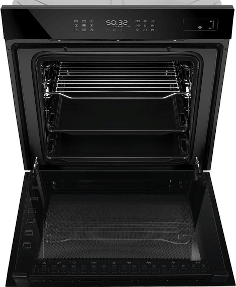 В духовом шкафу Maunfeld EOEH7615STB предусмотрено 7 программ автоменю и функция предварительного разогрева. Внутренняя поверхность камеры покрыта эмалью легкой очистки, что облегчает уход за шкафом. Внутреннее освещение и доводчик двери для плавного открытия и закрытия делают его использование еще более комфортным. Благодаря автоматическому отключению и блокировке панели управления, использование шкафа безопасно даже в домах с детьми. Телескопические направляющие на двух уровнях и хромированные направляющие на пяти уровнях. Такая конструкция позволяет оптимально использовать пространство внутри шкафа и удобно располагать продукты для приготовления. Максимальная температура, которую может достичь шкаф, составляет 310 градусов, а мощность гриля – 1100 Вт.