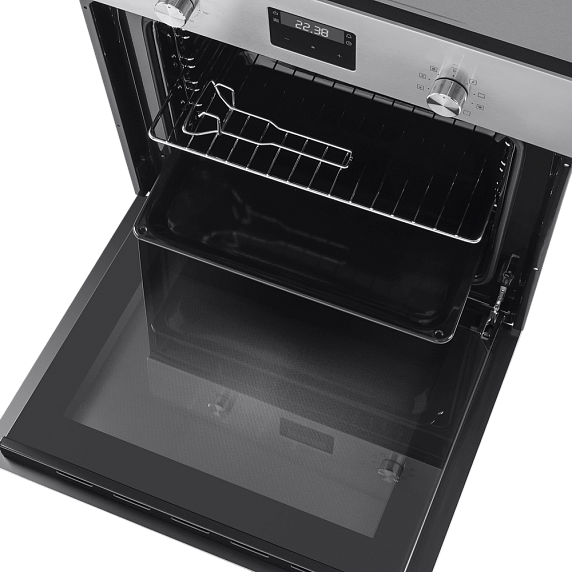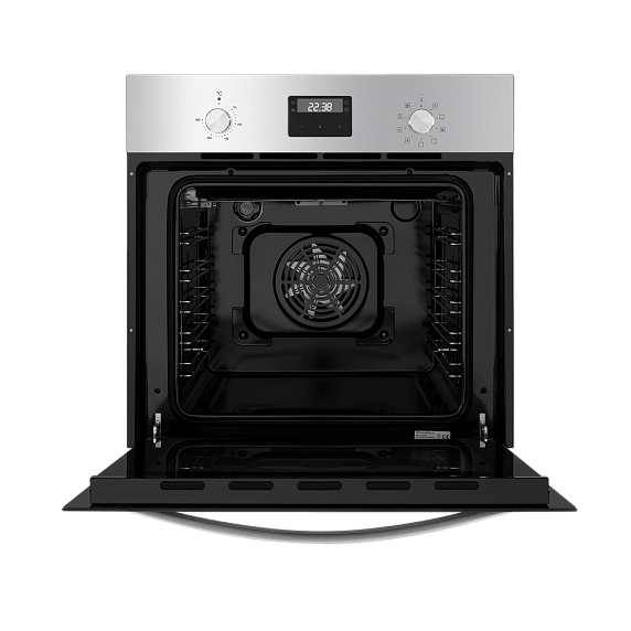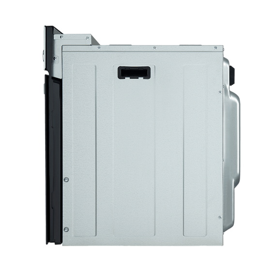 Встроенный вентилятор активно работает на протяжении всего процесса приготовления. Он создаёт особый воздушный барьер, который аккуратно выводит лишний жар наружу, не повреждая панель управления, мебель, рядом стоящую технику, а также не перегревая сильно поверхность духового шкафа. Кроме того, он помогает сохранить тепло внутри камеры.