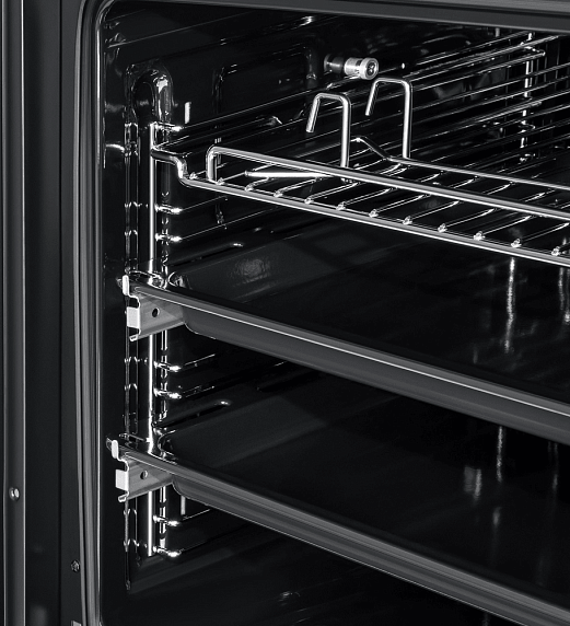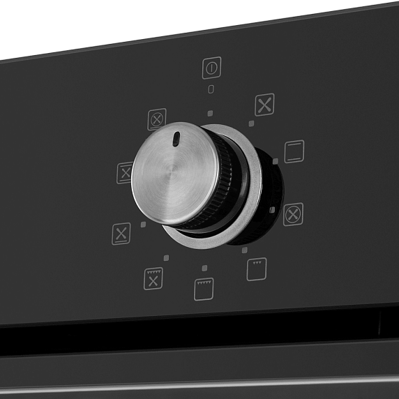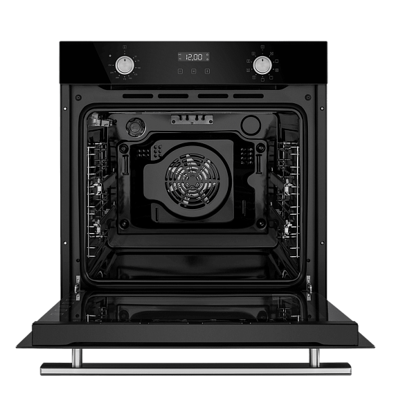 Встроенный вентилятор активно работает на протяжении всего процесса приготовления. Он создаёт особый воздушный барьер, который аккуратно выводит лишний жар наружу, не повреждая панель управления, мебель, рядом стоящую технику, а также не перегревая сильно поверхность духового шкафа. Кроме того, он помогает сохранить тепло внутри камеры.