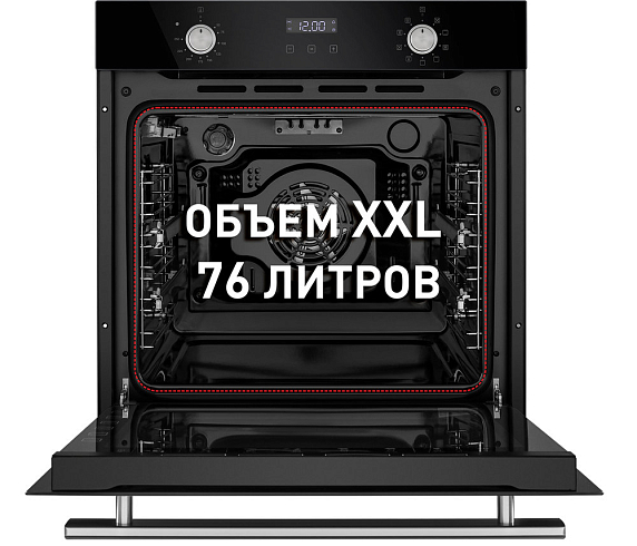 Духовой шкаф Maunfeld EOEM.769B из коллекции Master — это новое слово в кухонной бытовой технике. При стандартных размерах объем камеры увеличился до 76 л, это позволяет готовить блюда сразу на нескольких уровнях, экономя время. В комплектацию входят телескопические направляющие. Управление осуществляется при помощи утапливаемых ручек PUSH PULL, а за настройку таймера отвечают сенсорные кнопки. Дверца духового шкафа из тройного стекла и тангенциальное охлаждение создают холодный фронт и делает процесс приготовления безопасным.