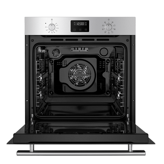 Встроенный вентилятор активно работает на протяжении всего процесса приготовления. Он создаёт особый воздушный барьер, который аккуратно выводит лишний жар наружу, не повреждая панель управления, мебель, рядом стоящую технику, а также не перегревая сильно поверхность духового шкафа. Кроме того, он помогает сохранить тепло внутри камеры.