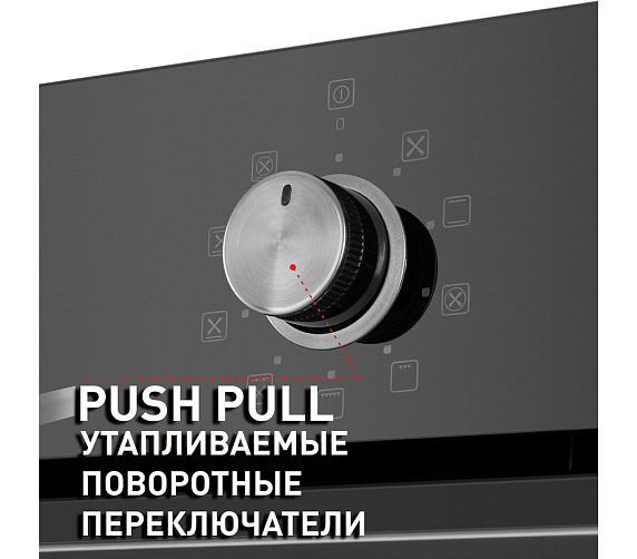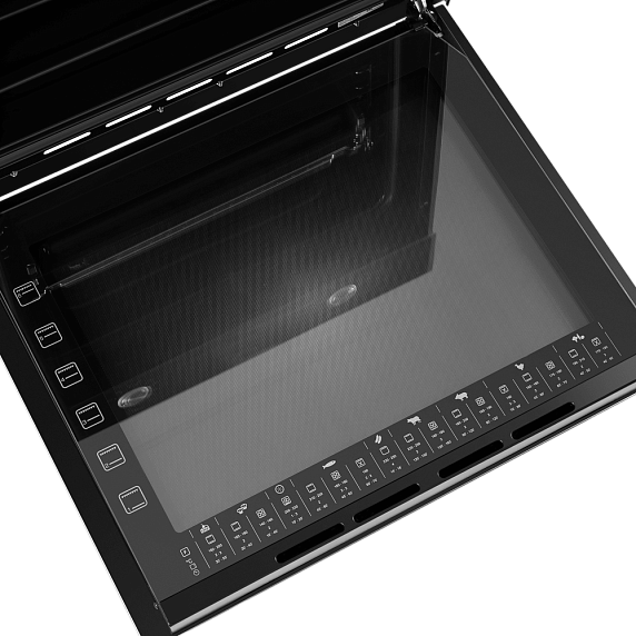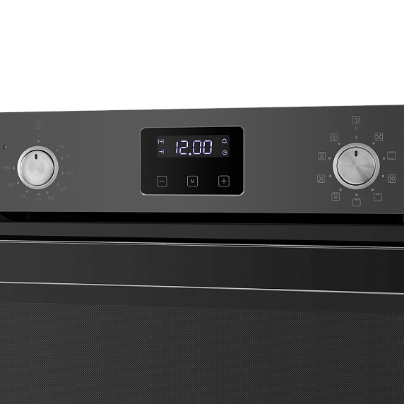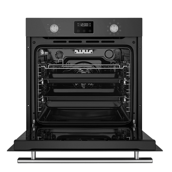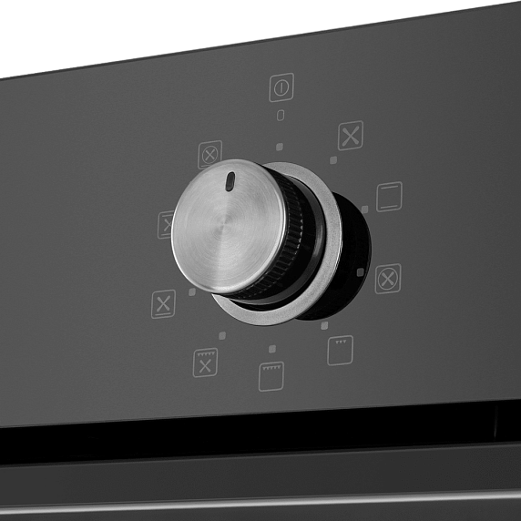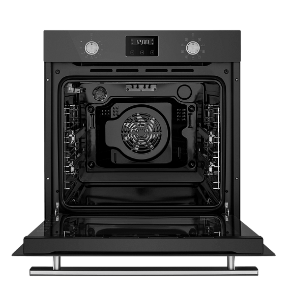 Встроенный вентилятор активно работает на протяжении всего процесса приготовления. Он создаёт особый воздушный барьер, который аккуратно выводит лишний жар наружу, не повреждая панель управления, мебель, рядом стоящую технику, а также не перегревая сильно поверхность духового шкафа. Кроме того, он помогает сохранить тепло внутри камеры.