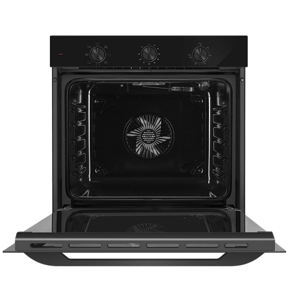Шкаф выполнен в элегантном черном цвете, что позволяет ему гармонично вписаться в любой интерьер. Управление осуществляется с помощью удобных поворотных переключателей, которые обеспечивают точную настройку температуры и времени приготовления. Это делает использование устройства интуитивно понятным даже для тех, кто не имеет большого опыта в кулинарии.