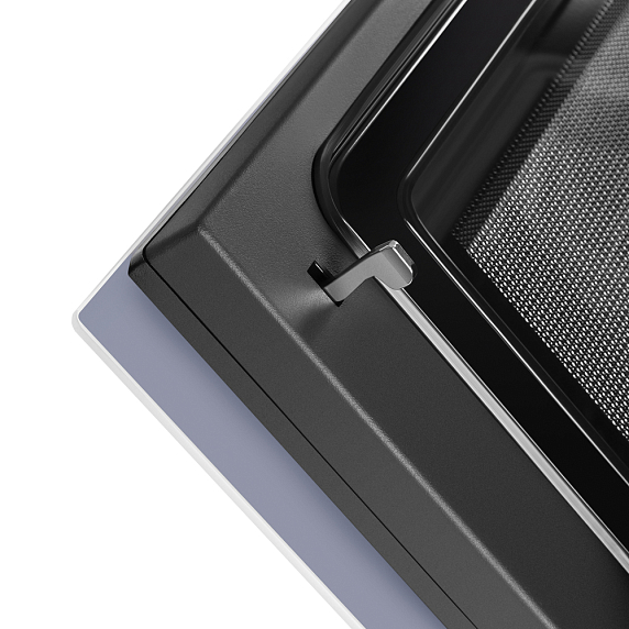 Встроенный вентилятор активно работает на протяжении всего процесса приготовления. Он создаёт особый воздушный барьер, который аккуратно выводит лишний жар наружу, не повреждая панель управления, мебель, рядом стоящую технику, а также не перегревая сильно поверхность духового шкафа. Кроме того, он помогает сохранить тепло внутри камеры.