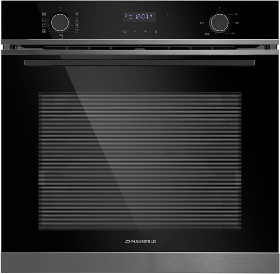 У духового шкафа Маунфилд MEOM729PB201 большой полезный объем камеры — 72 литра. Этого хватит, чтобы приготовить торжественный ужин для семьи и гостей. Вы можете разнообразить свое меню, используя разные режимы работы прибора. Их тут 9. Есть классический верхний и нижний нагрев, можно включить только нижний или воспользоваться грилем, грилем с конвекцией. Не забывайте о том, что, благодаря вентилятору, оттаивание замороженных продуктов получается равномерным и бережным. Электронный таймер поможет, если вы отвлеклись и забыли о том, что в духовке что-то есть. Он предупредит о том, что блюдо готово, световым и звуковым сигналом. Кроме того, можно настроить так, чтобы после определенного времени прибор отключался сам.