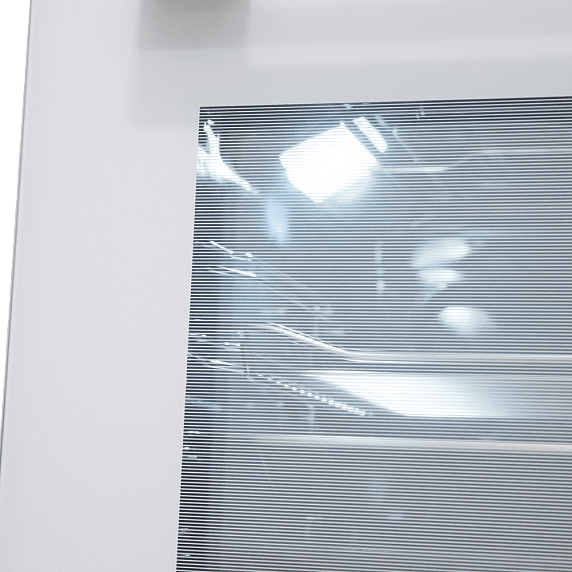 Благодаря многослойному остеклению температура фронта поддерживается на уровне 50°С, что защищает от возникновения ожогов при случайном прикосновении и повреждения мебели.