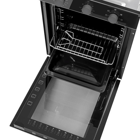 Для тех, кто ценит безопасность, предусмотрены дополнительные элементы: утапливаемые рукояти не мешают при плотной встройке, двойное стекло двери снижает отдачу тепла, а «холодный фронт» минимизирует риск ожогов при коротких проверках готовности. Наличие внутреннего освещения делает процесс наблюдения за блюдами максимально удобным — больше не нужно открывать дверцу, чтобы увидеть степень прожарки. Эргономика аксессуаров и продуманная компоновка делают эксплуатацию простой и приятной, а механическое управление обеспечивает долговечность без сложной электроники.