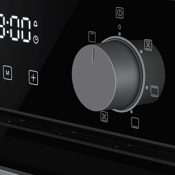 Функциональность представлена шестью режимами нагрева, включая верхний и нижний нагрев, классическую конвекцию, конвекцию с интенсивной выпечкой и режим с конвекцией и нижним нагревом, что даёт гибкость при работе с разными рецептами — от хрустящей корочки у пирогов до равномерного пропекания мяса. Наличие гриля с возможностью работы при закрытой дверце обеспечивает эффективное подрумянивание и сокращает время приготовления, а функция размораживания помогает быстро подготовить продукты к готовке. Быстрый разогрев рабочей камеры экономит время на предварительную подготовку, а максимальная температура до 250 °C расширяет возможности для выпечки и запекания.