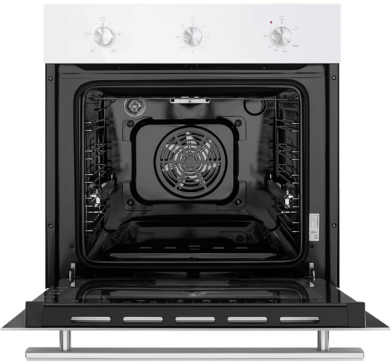 Управление духовым шкафом осуществляется с помощью механических поворотных переключателей, что делает его использование простым и удобным. Настройка времени приготовления обеспечивается механическим таймером с звуковым сигналом, благодаря которому вы всегда будете в курсе процесса приготовления. Модель обладает объемом рабочей камеры 60 литров, что позволяет приготовить большое количество блюд одновременно. Внутренняя поверхность камеры покрыта эмалью легкой очистки, что облегчает уход за устройством. Дверца духового шкафа съемная и оснащена тремя стеклами, что обеспечивает безопасность и комфорт при использовании.