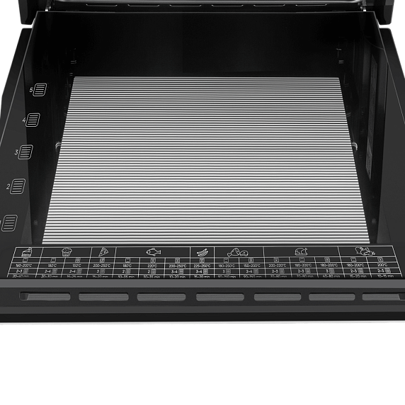 - Вместительная рабочая камера 76 литров и пять уровней установки обеспечивают максимальную гибкость готовки.