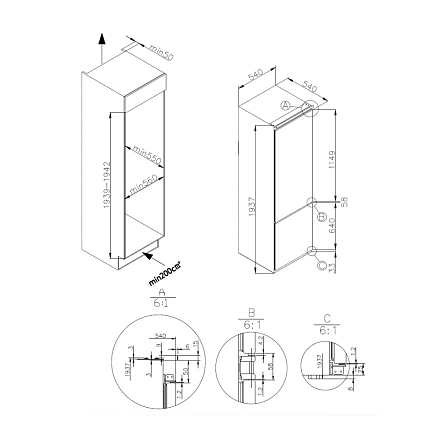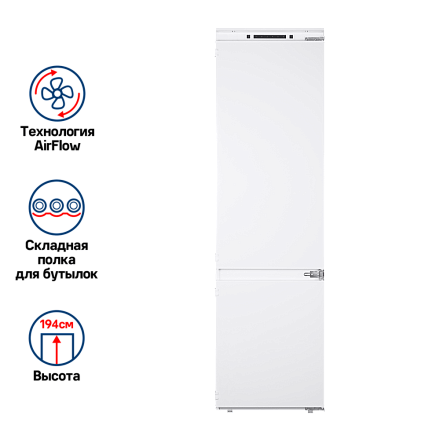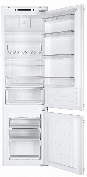 Двухкамерный холодильник MAUNFELD MBF193NFFW встраиваемого типа установки выполнен в белом цвете. Благодаря чему отлично впишется в имеющийся интерьер любого вида. Благодаря своим оптимальным габаритам ( 193.7×54×54 см (В х Ш х Г)) модель отлично подойдет для небольшой кухни. Внутреннее покрытие выполнено из антибактериального пластика, который гарантирует легкую очистку.