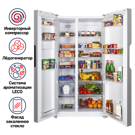 Инверторный компрессор отличается экономичностью и тихой работой. Прибор оснащен ярким и энергоэффективным LED-освещением, которое обеспечивает равномерную подсветку всего внутреннего пространства, позволяя легко найти необходимые продукты.