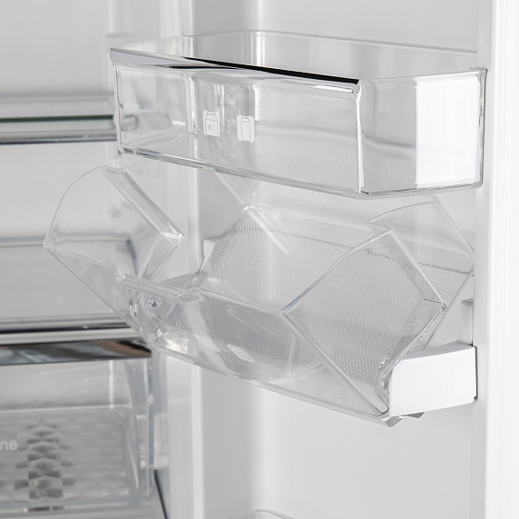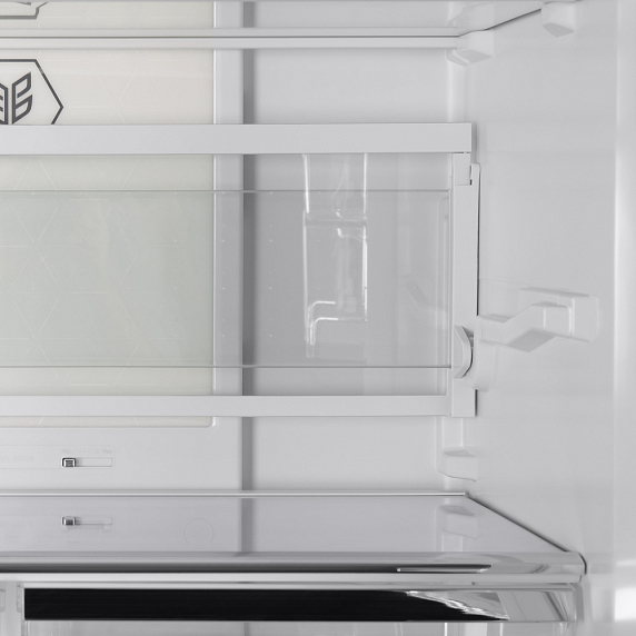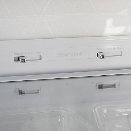 Функция холодильника «Суперзаморозка» позволяет понизить температуру в морозилке до минимума и удерживать ее на этом уровне в течение продолжительного времени. Благодаря этому помещенные внутрь продукты замораживаются быстро, эффективно и равномерно, а значит, лучше сохраняют свои полезные свойства. Система NoFrost — конструктивное решение, при котором испаритель внесен в отдельный отсек, где и происходит охлаждение воздуха. Благодаря такой компоновке в морозилке снижается влажность, а значит, лишняя вода не превращается в наледь. Ко встроенным настройкам прибора относится функция «Отпуск», которая полезна, если требуется надолго отлучиться из дома или квартиры. Во время ее действия холодильное отделение останавливается, работает только морозильная камера.