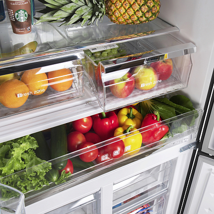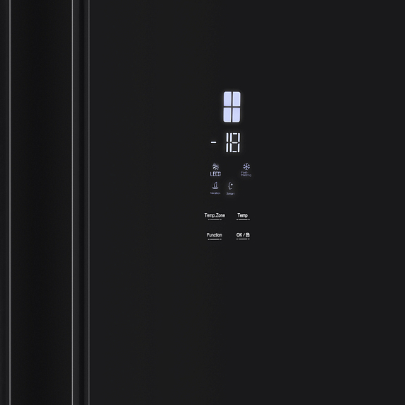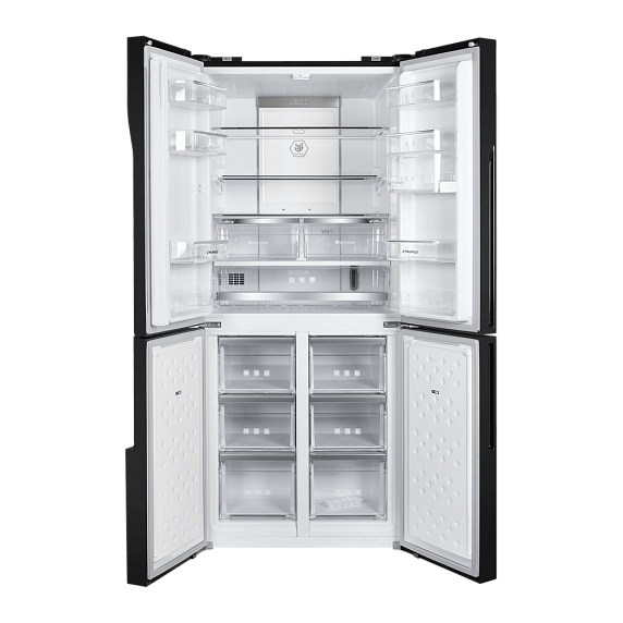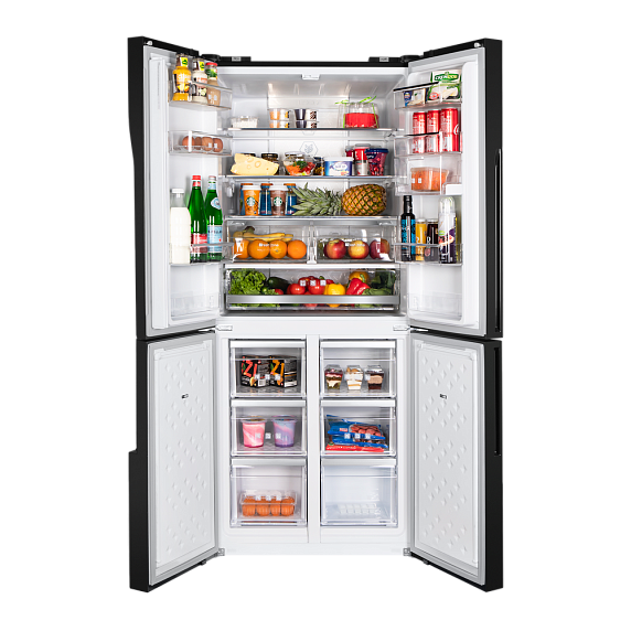 Холодильник Maunfeld MFF182NFB — отдельно стоящий прибор, предусматривающий морозильную камеру и 4 дверцы. Модель выполнена в черном глянцевом цвете. Размеры техники равны: высота — 182 см, ширина — 78,5 см, глубина — 71,6 см. Данный товар может похвастаться большим полезным объемом, он составляет 418 л, при этом 274 л приходится на холодильное отделение, а 144 л — на морозильное. Благодаря этому Вы теперь можете не беспокоиться о том, что все продукты не поместятся — в холодильник Maunfeld MFF182NFB вместится все. Наружная сенсорная панель позволяет устанавливать температуру и контролировать ее уровень, не открывая дверцу. Функция блокировки не позволяет детям отключать питание и менять настройки без надобности. Если Вы случайно забыли закрыть дверцу, то сработает звуковой сигнал. Это обеспечивает безопасность эксплуатации.