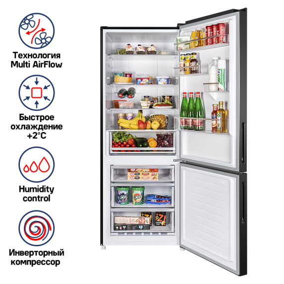 Данный агрегат отличается не только практичностью, но и эстетической привлекательностью. Его актуальное оформление и добротные материалы подчёркивают стиль интерьера, формируя атмосферу уюта и комфорта. MAUNFELD MFF1857NFSB — это не просто бытовой прибор, а часть жилого пространства, заботящаяся о свежести и сохранности провизии.