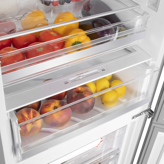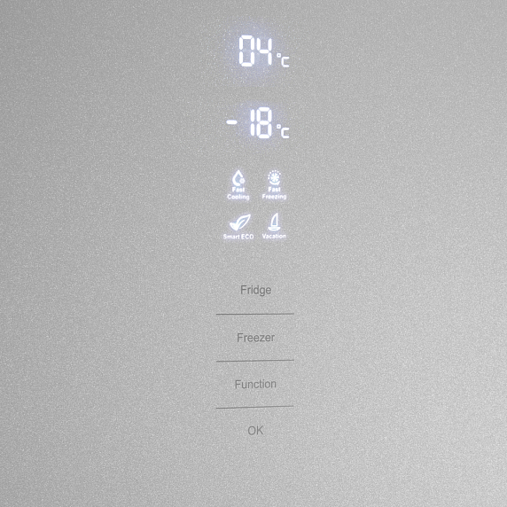 Управление холодильником осуществляется с помощью сенсорных переключателей и электронного дисплея. Это позволяет легко контролировать и регулировать температуру внутри холодильника и морозильника. Функции суперохлаждения и быстрой заморозки обеспечивают быстрое и эффективное охлаждение продуктов. Особенностью этой модели является функция «Отпуск», которая позволяет снизить энергопотребление при длительном отсутствии дома. Системы No Frost в холодильном и морозильном отделениях предотвращают образование инея, обеспечивая автоматическое размораживание. Внутренняя подсветка на светодиодах обеспечивает яркое и равномерное освещение, что упрощает поиск необходимых продуктов.
