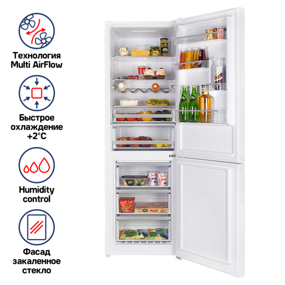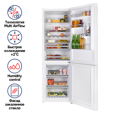 Холодильник оснащен системой многопоточного охлаждения Multi Air Flow и антибактериальным покрытием. Функция Humidity control позволяет поддерживать оптимальный уровень влажности внутри холодильника. Благодаря этим функциям продукты сохраняют свою свежесть и полезные свойства на долгое время.
