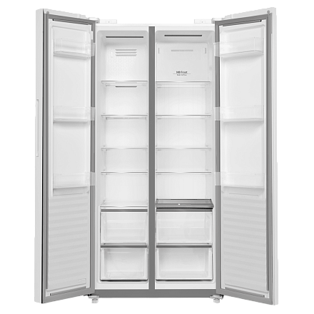 Холодильник Maunfeld MFF191NFPW - это современное устройство, которое сочетает в себе продвинутые технологии и стильный дизайн. Он является отдельностоящим устройством с двумя камерами, обеспечивающими общий объем 683 литра. Полезный объем составляет 606 литров, включая 365 литров в холодильном отделении и 170 литров в морозильном отделении. Этот холодильник отличается элегантным белым цветом и четырьмя дверями, которые добавляют ему особого шарма. Материал фасада - стекло, что придает ему современный и стильный вид. Внутренняя подсветка выполнена на светодиодах, что обеспечивает яркое и равномерное освещение. Дверной упор может быть установлен как справа, так и слева, что упрощает использование холодильника в различных условиях.
