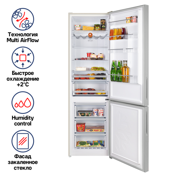 Тип прибора: холодильник с морозильной камерой, Тип установки: отдельностоящий, Высота, см: 200, Цвет: бежевый, Размораживание морозильного отделения: автоматическое
