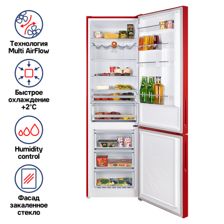 Тип прибора: холодильник с морозильной камерой, Тип установки: отдельностоящий, Высота, см: 200, Цвет: красный, Размораживание морозильного отделения: автоматическое