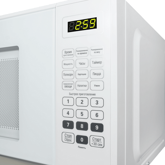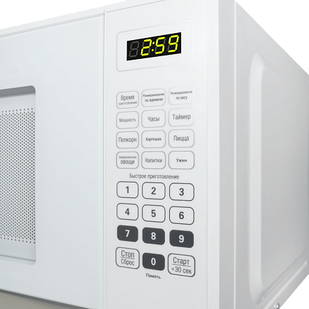 Доверьте блюда запрограммированным режимам микроволновой печи Маунфилд MFSMO.20.7 SGW. Они разработаны для приготовления картофеля, пиццы, замороженных овощей, попкорна. Можно активировать программу, которая запомнит ваш излюбленный метод обработки продуктов. У устройства 6 автоматических режимов приготовления. Прибор работает на 5 различных мощностях микроволн. Отдельно надо сказать о функции разморозки. Воздух, прогретый до 30 градусов бережно согреет полуфабрикаты, сохранив их свежесть и текстуру. Сами определяйте длительность этой операции. Не забывайте переворачивать продукт, чтобы все оттаяло равномерно.