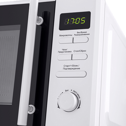 Микроволновая печь Maunfeld MFSMO.20.7TWH выполнена в универсальном белом цвете. Дверца черного цвета навесная, открывается при помощи специальной ручки. Есть 8 режимов автоприготовления В комплекте поставляются вращающееся кольцо и стеклянный поддон.