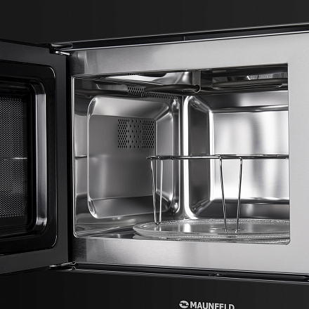 Микроволновая печь Maunfeld  MBMO.20.2 PGB черный — стильный дизайн, комфорт и новейшие технологии. Внутреннее покрытие камеры полностью выполнено из нержавеющей стали AISI 304, в связи с чем, оно устойчиво к механическим воздействиям и абразивной чистке, отличается прочностью и долговечностью.