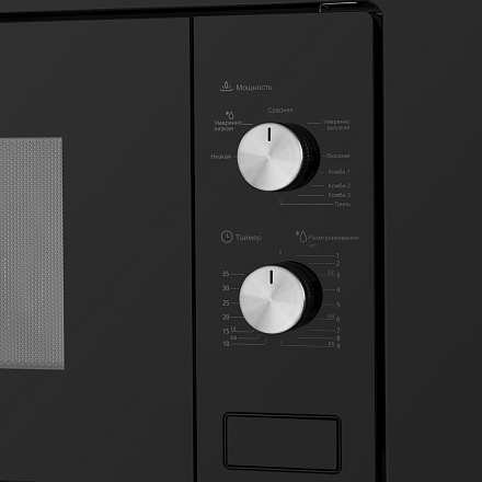 Тип: встраиваемая, Объем, л: 20, Особенности модели: СВЧ с грилем, Цвет: черный, Тип управления: механическое, Мощность микроволн, Вт: 800